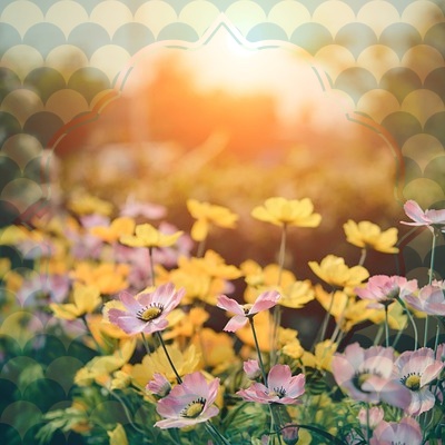 노을과 꽃이 너무 잘 어우러지는 풍경이네요 화사한 꽃들이 너무 예쁘네요